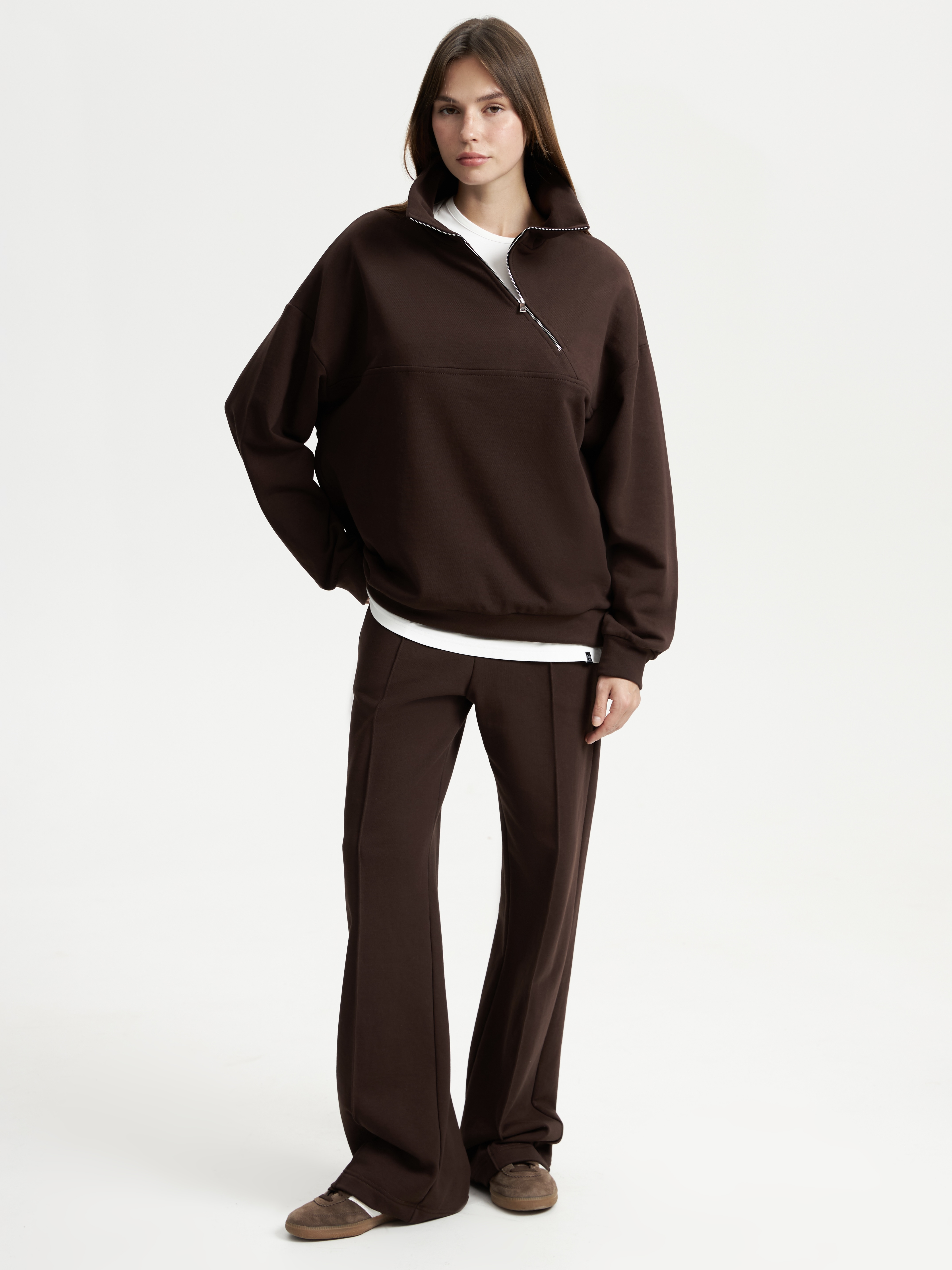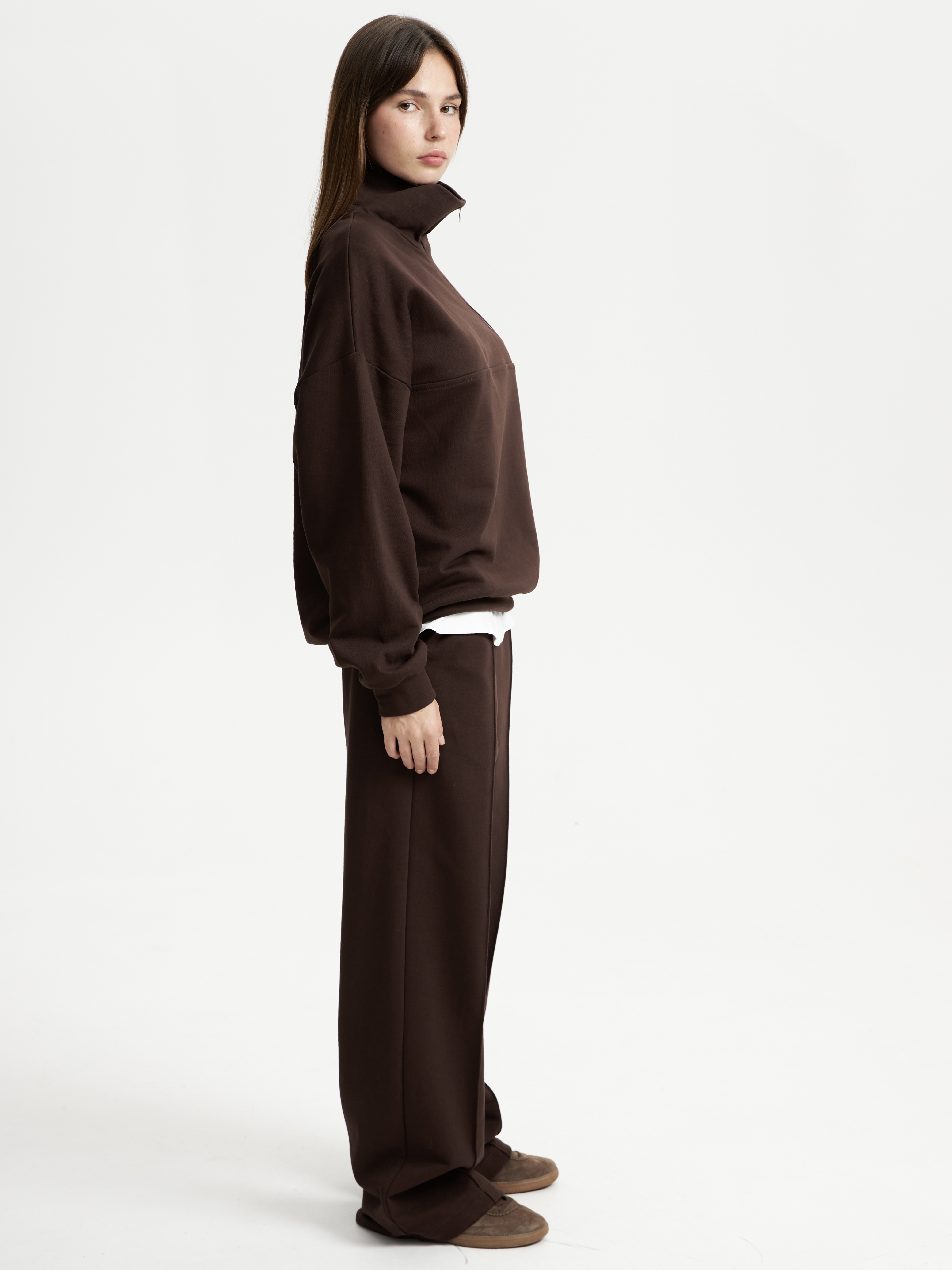 Брюки широкие футер шоколад