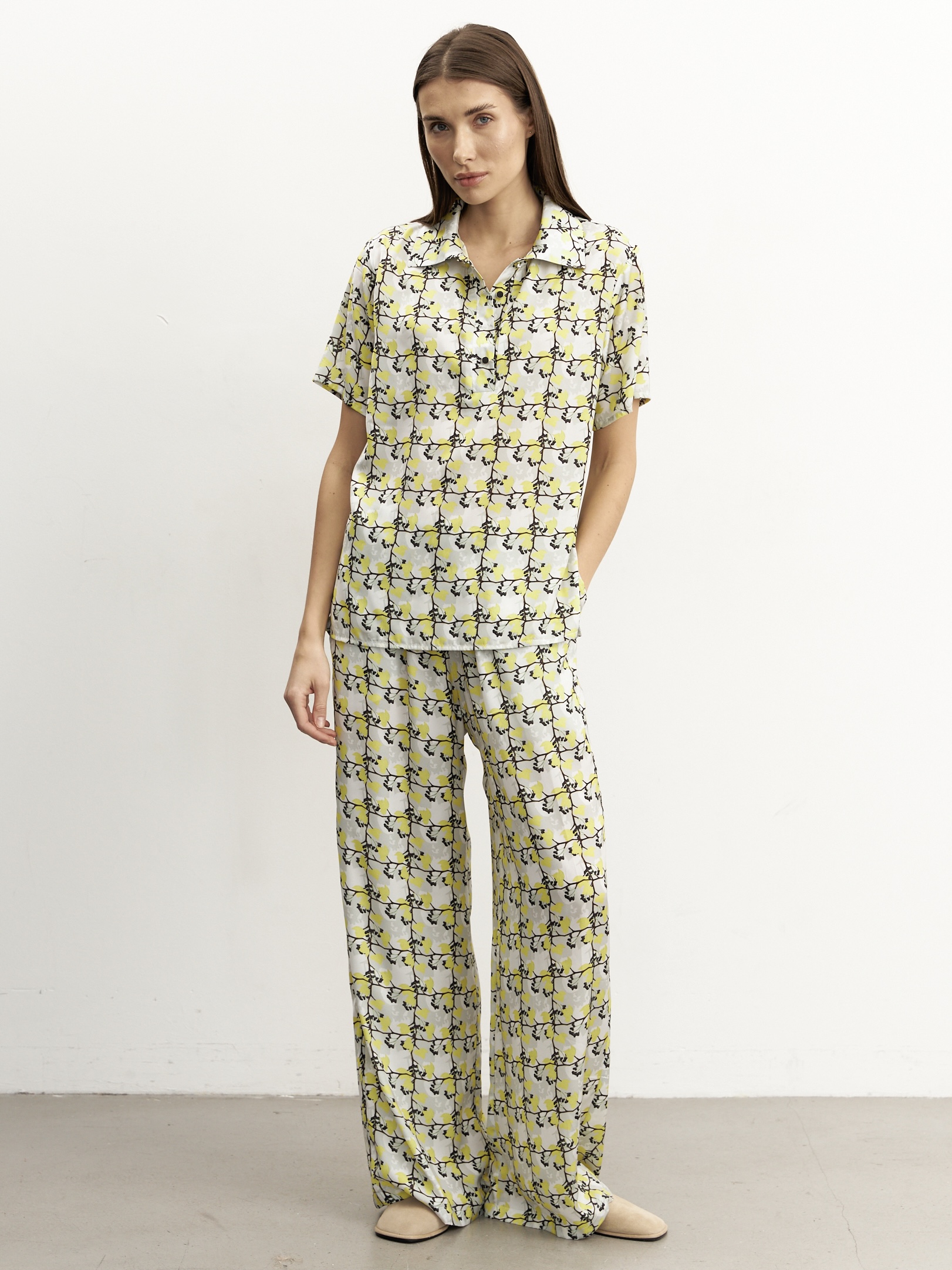 Брюки шелковые с принтом
