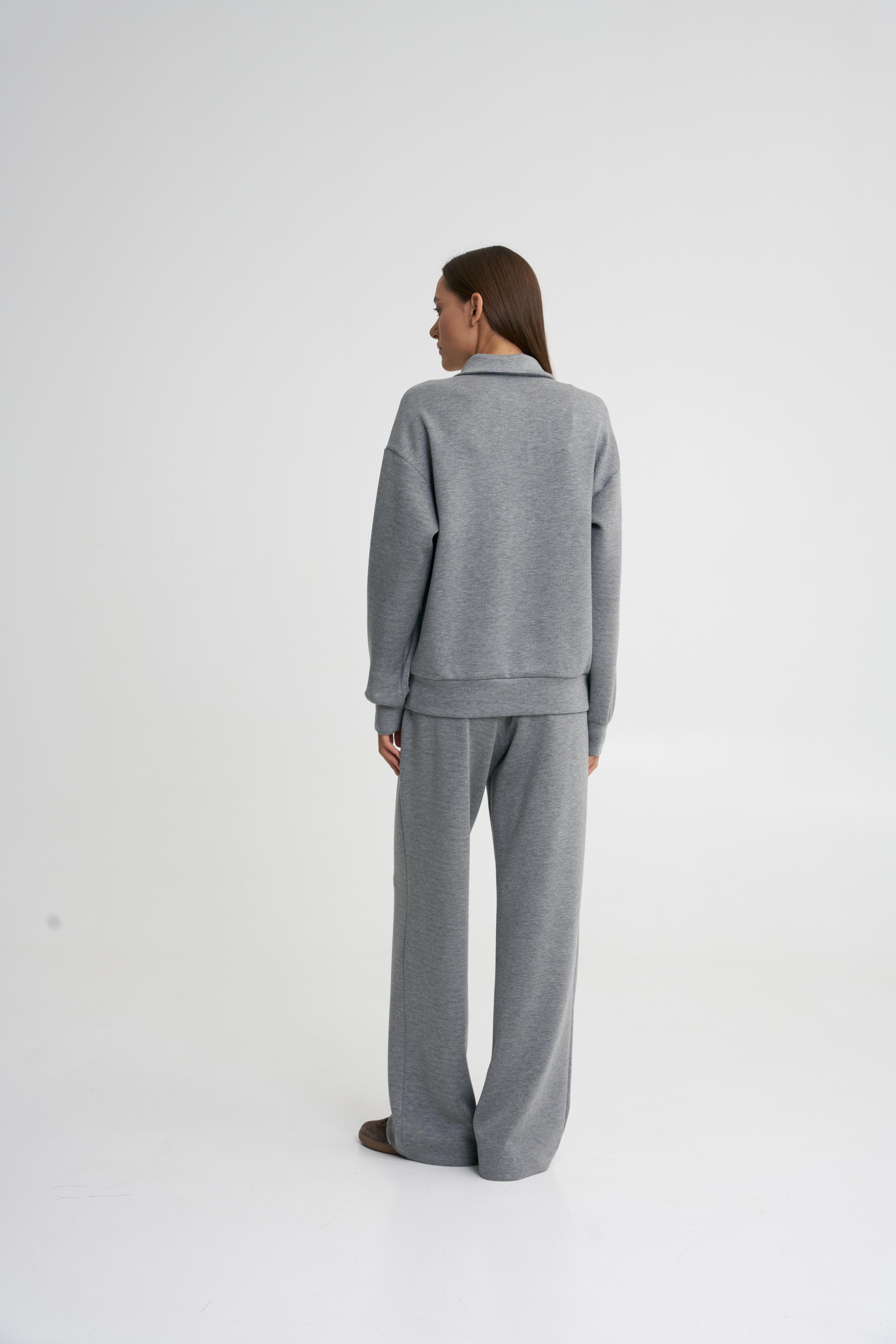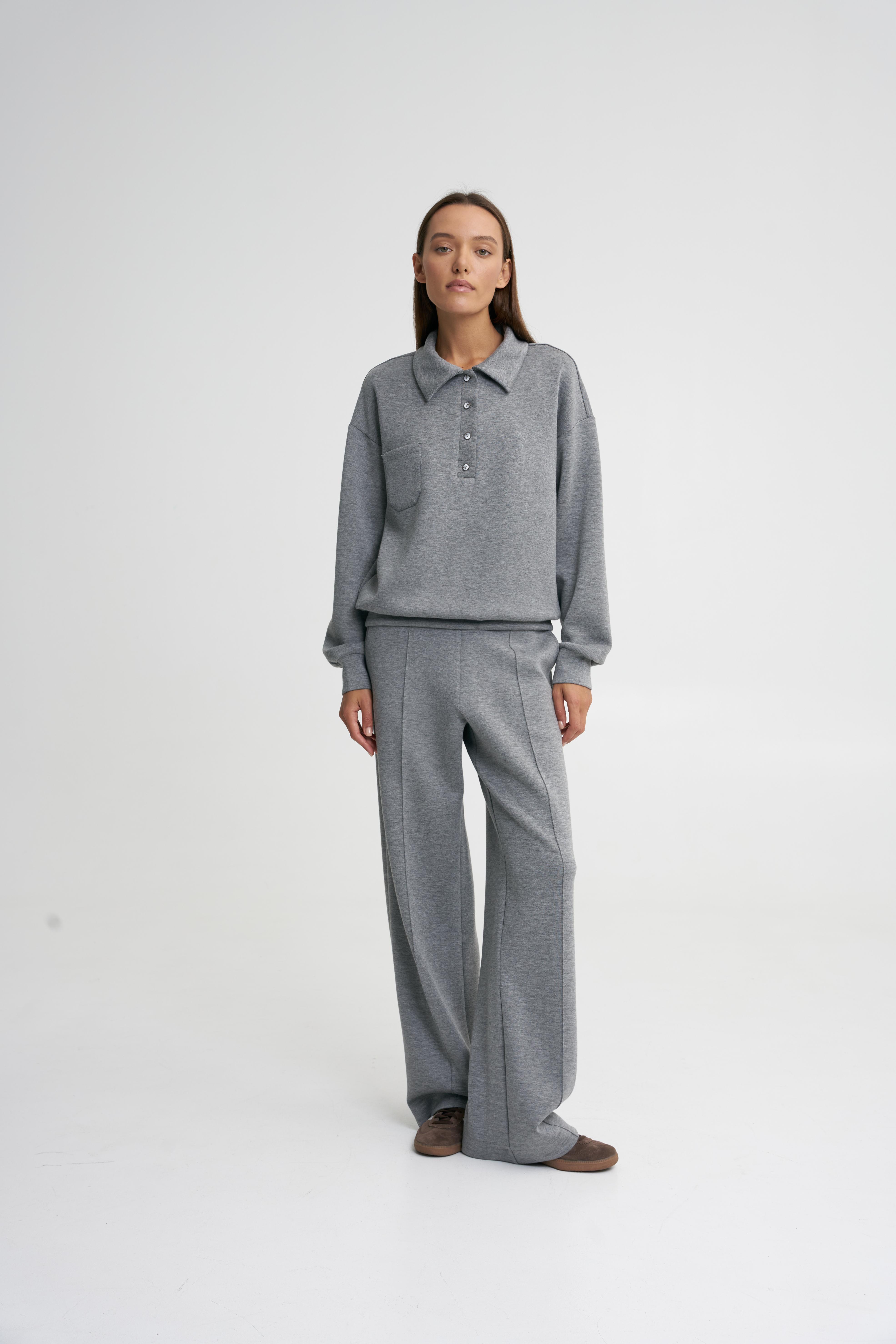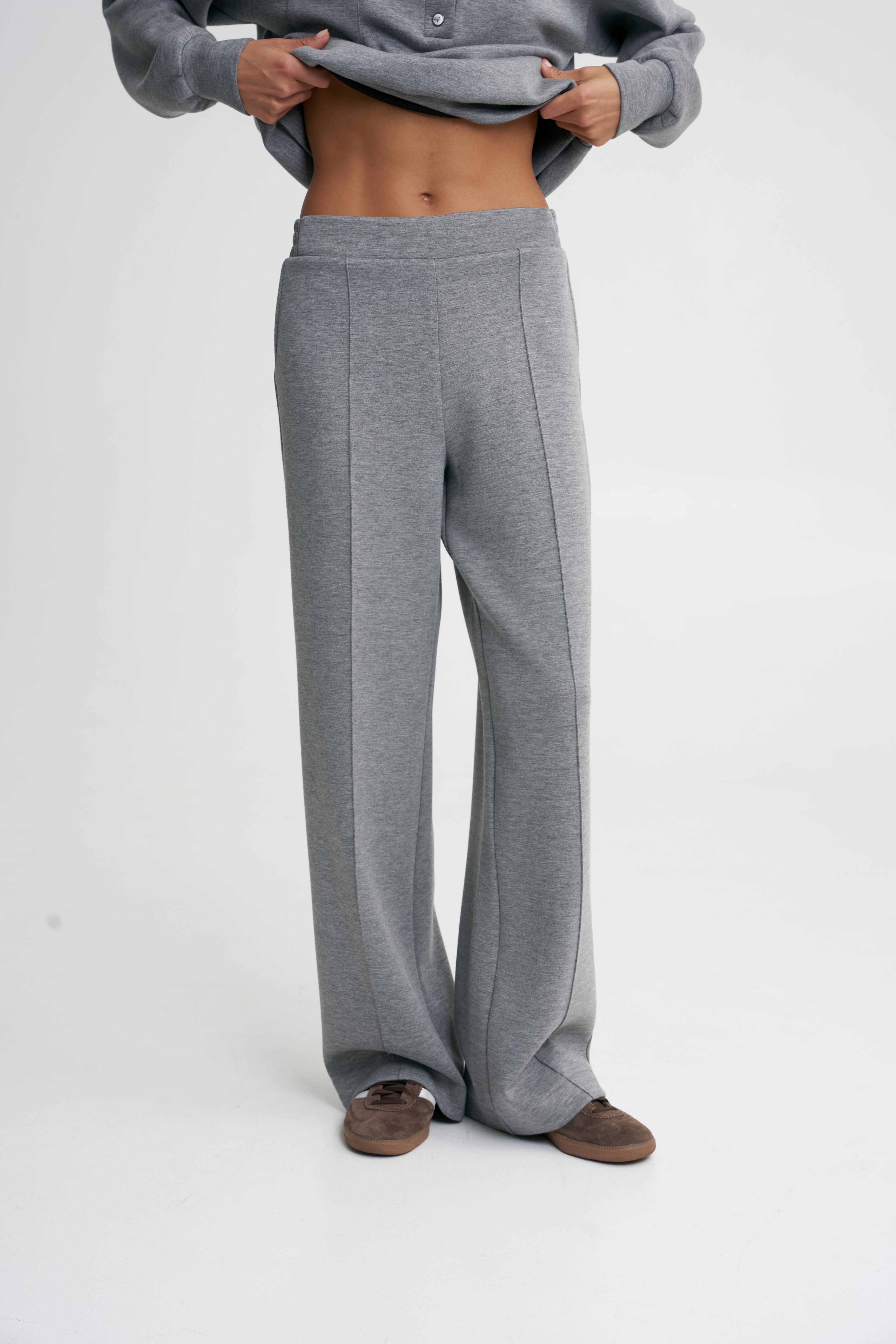 Брюки широкие серые меланж