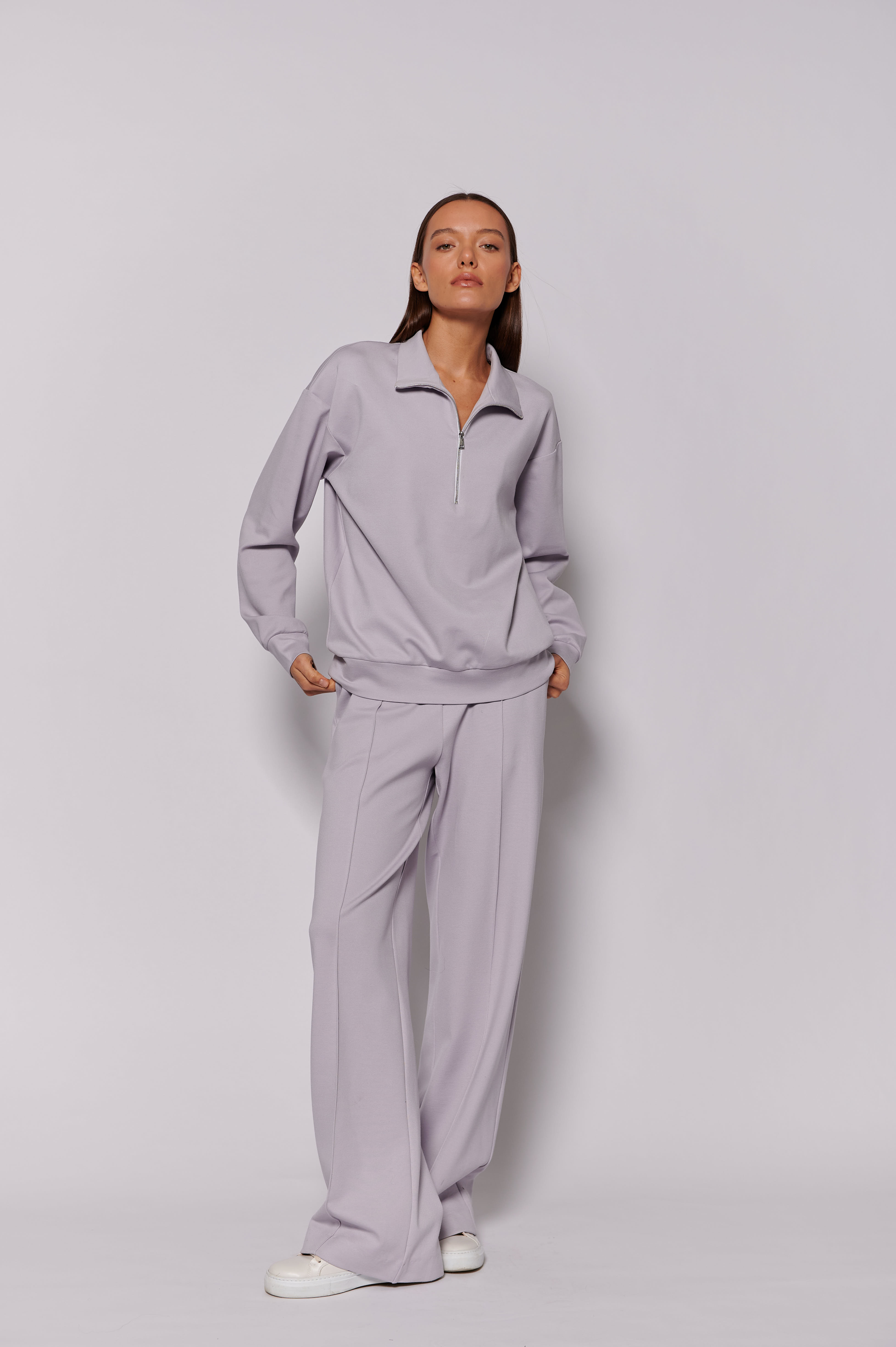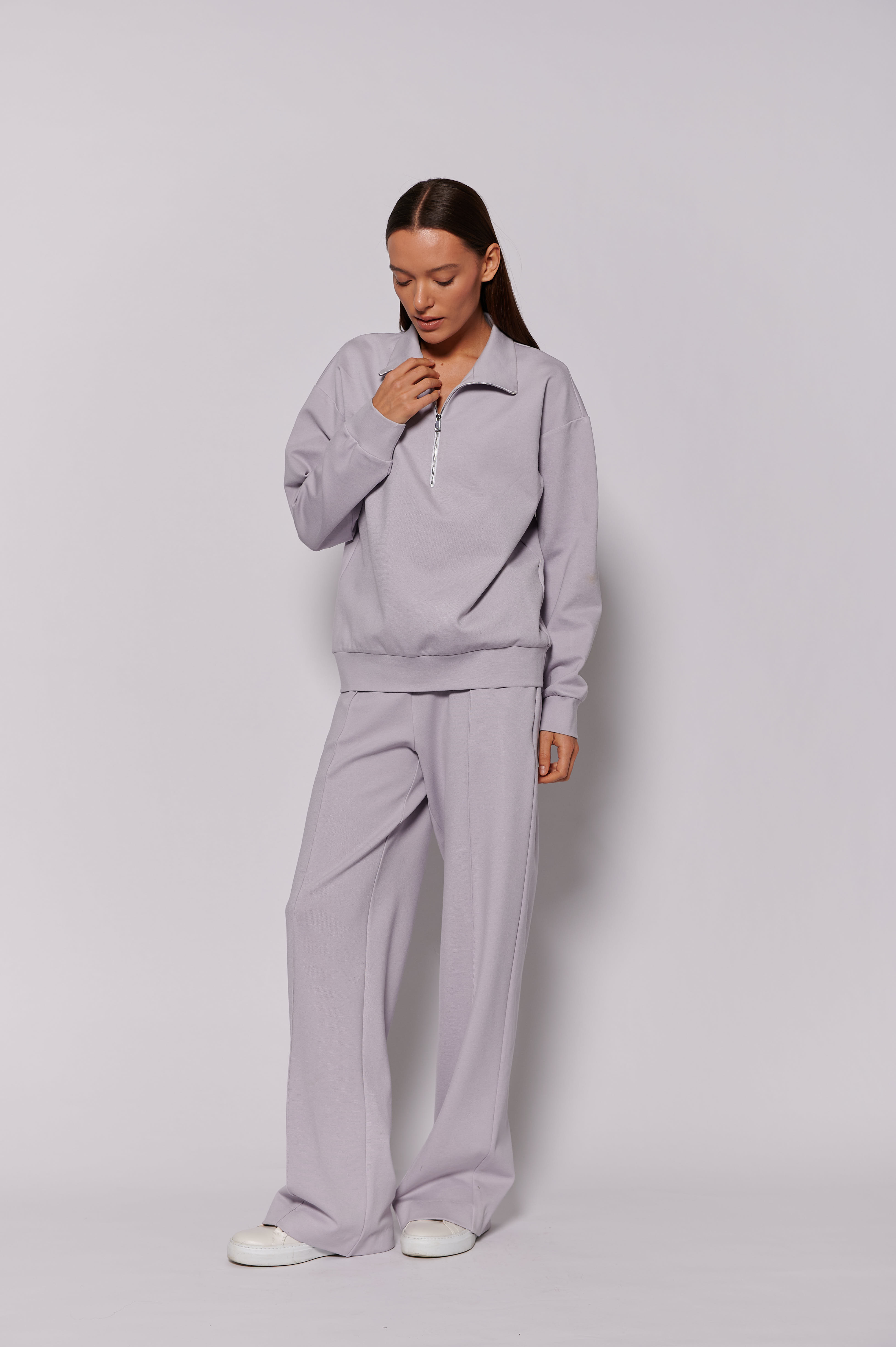 Брюки широкие светло-серые