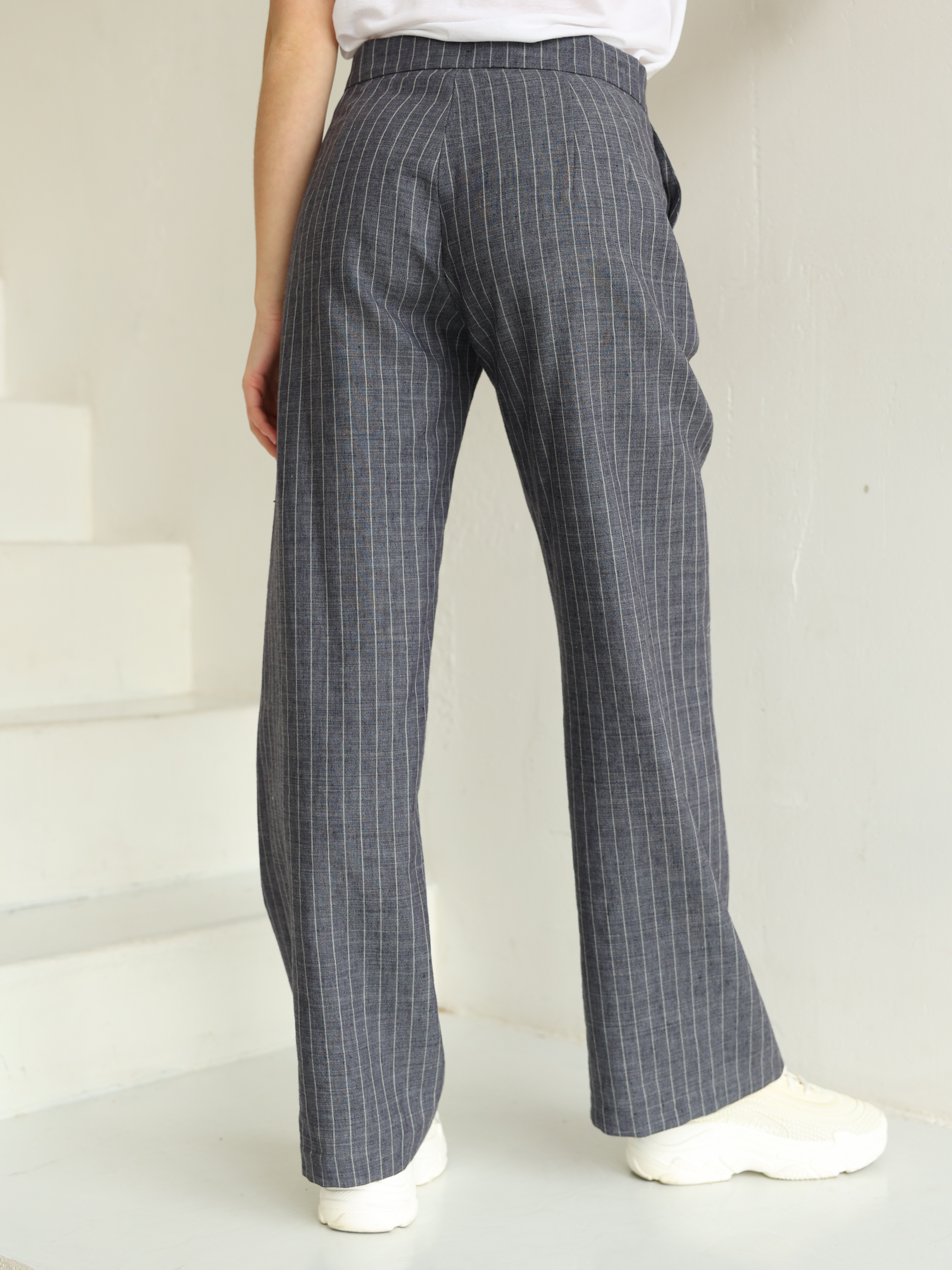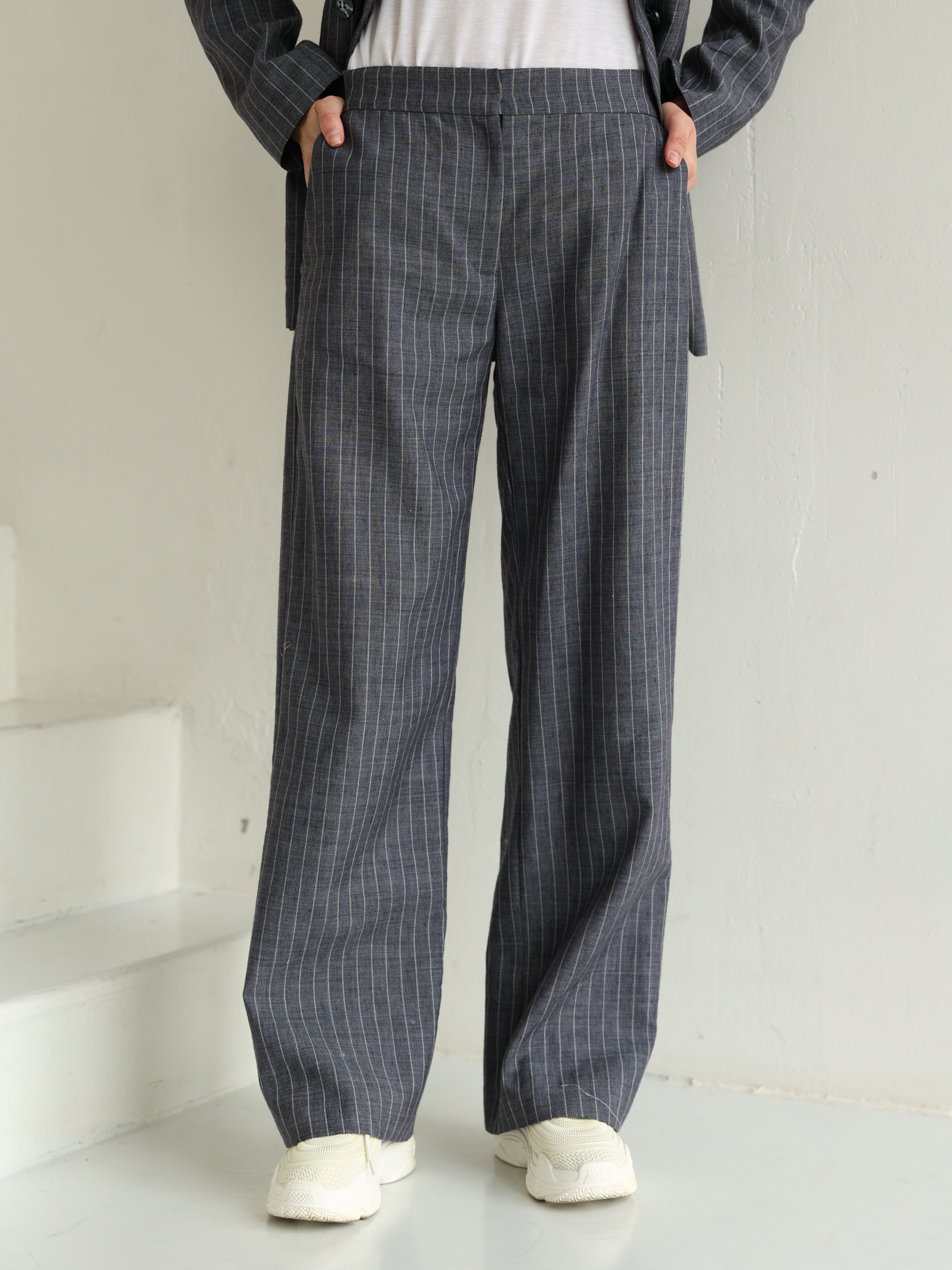 Брюки в полоску лен серые