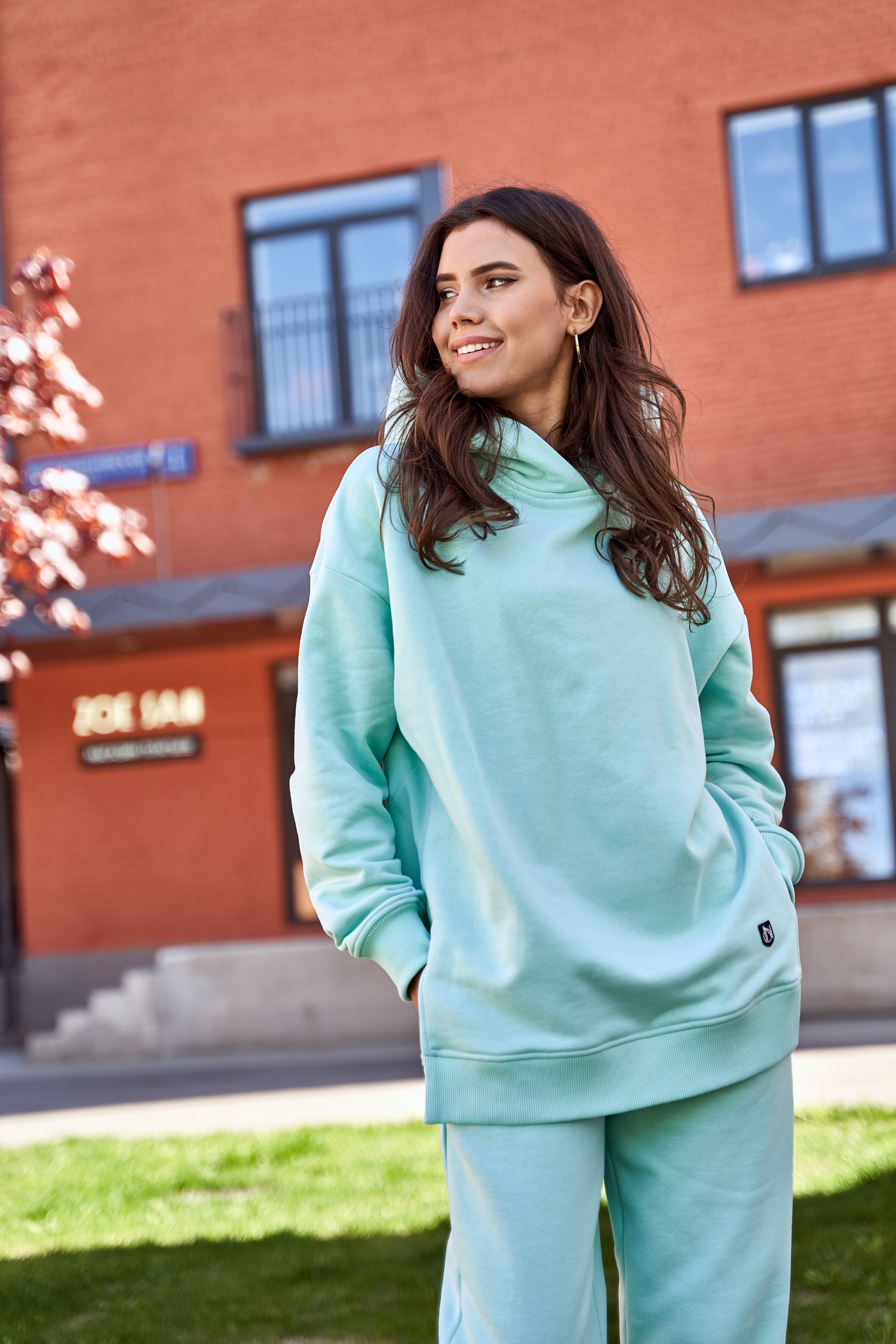 Худи удлиненное ментол