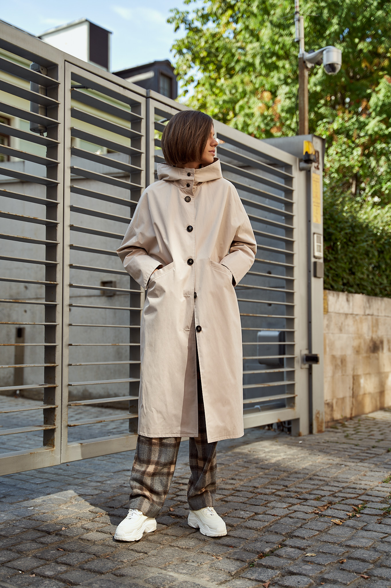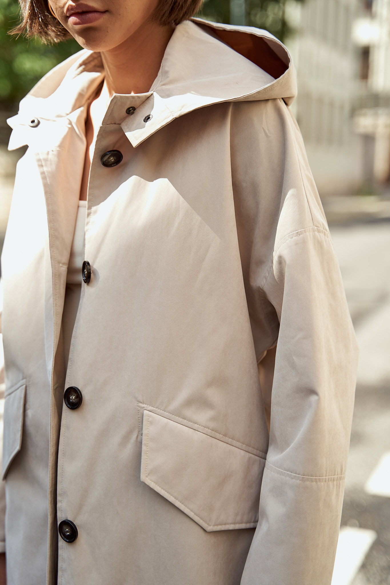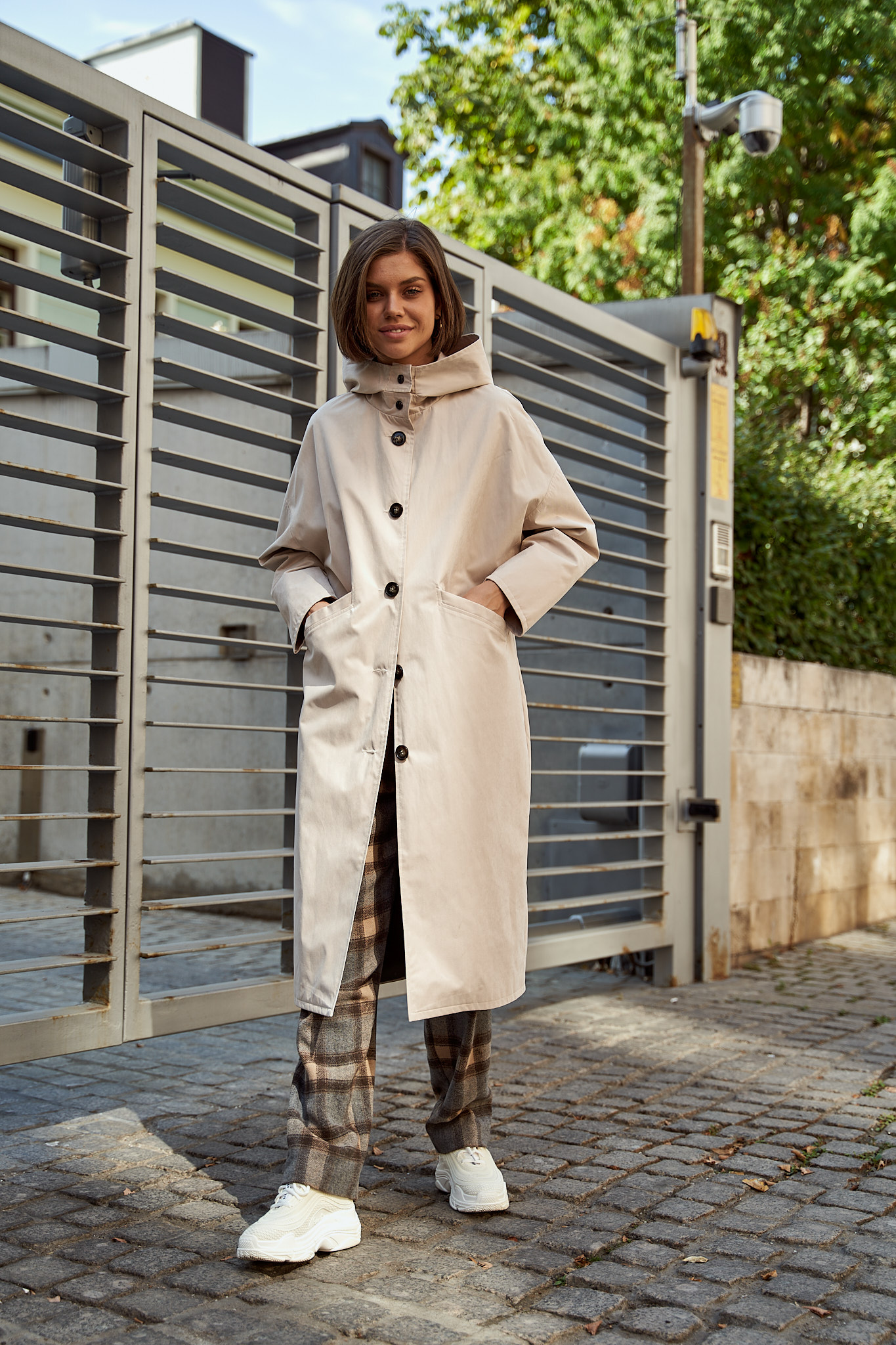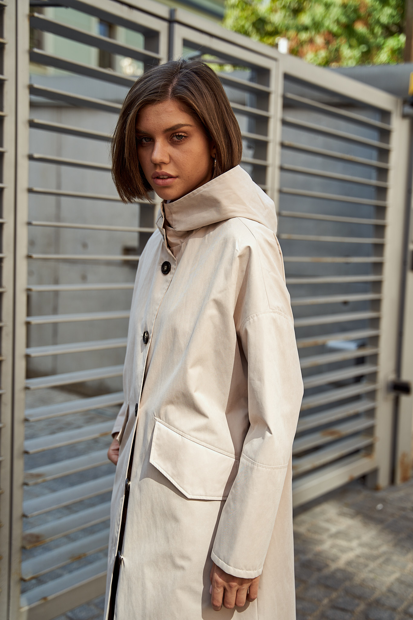 Тренч с капюшоном айвори