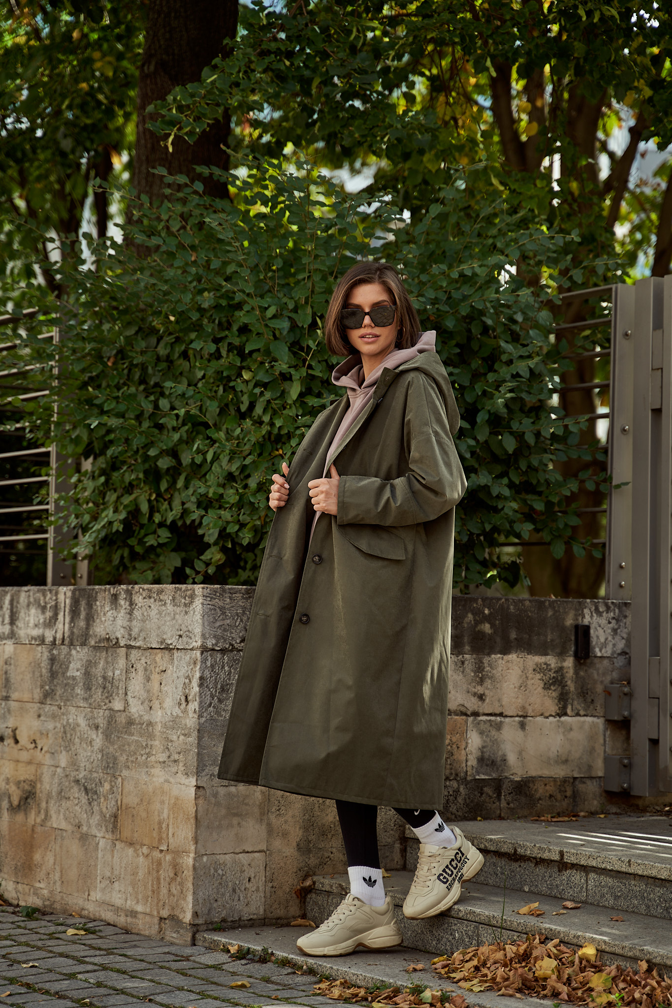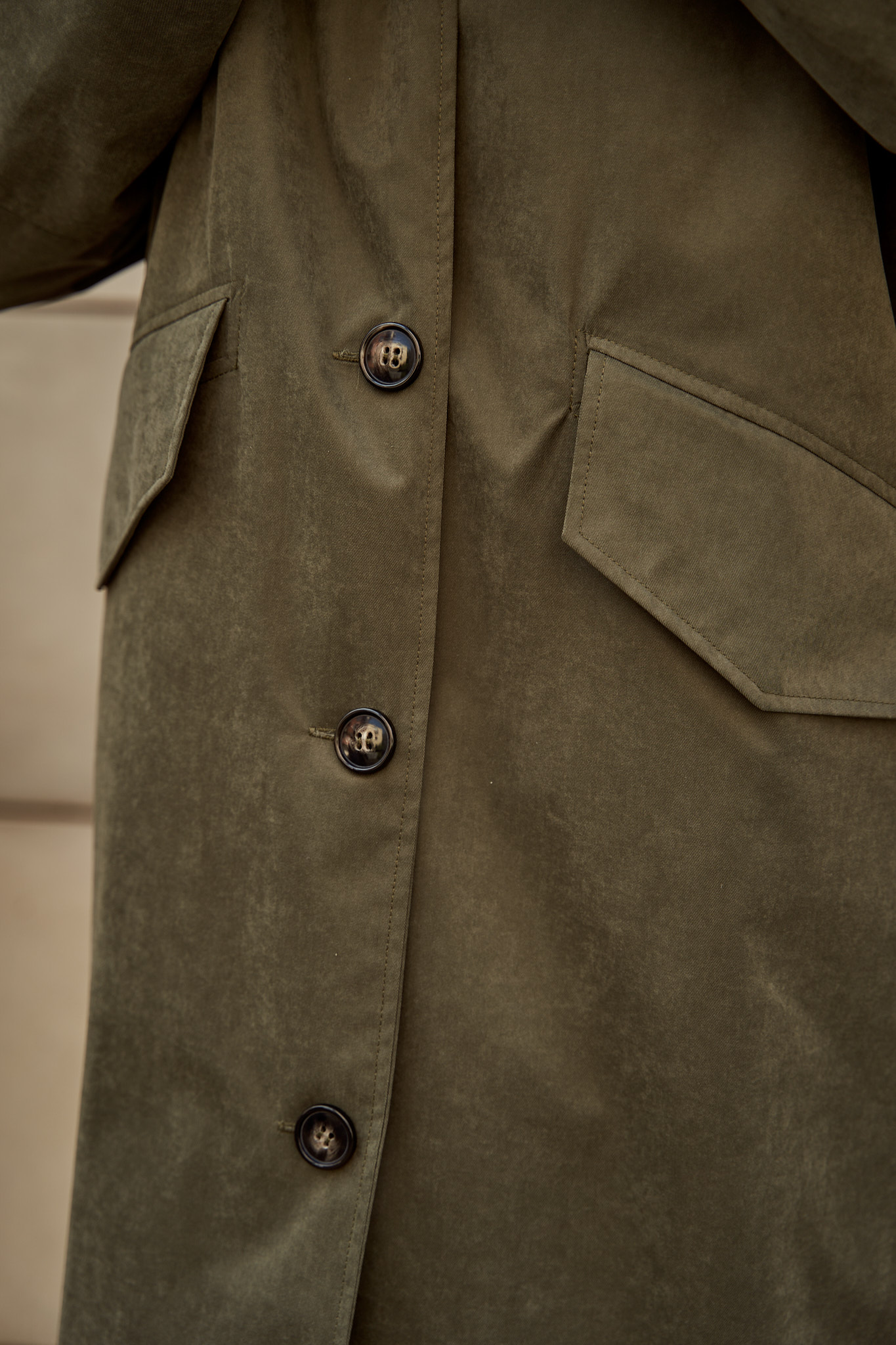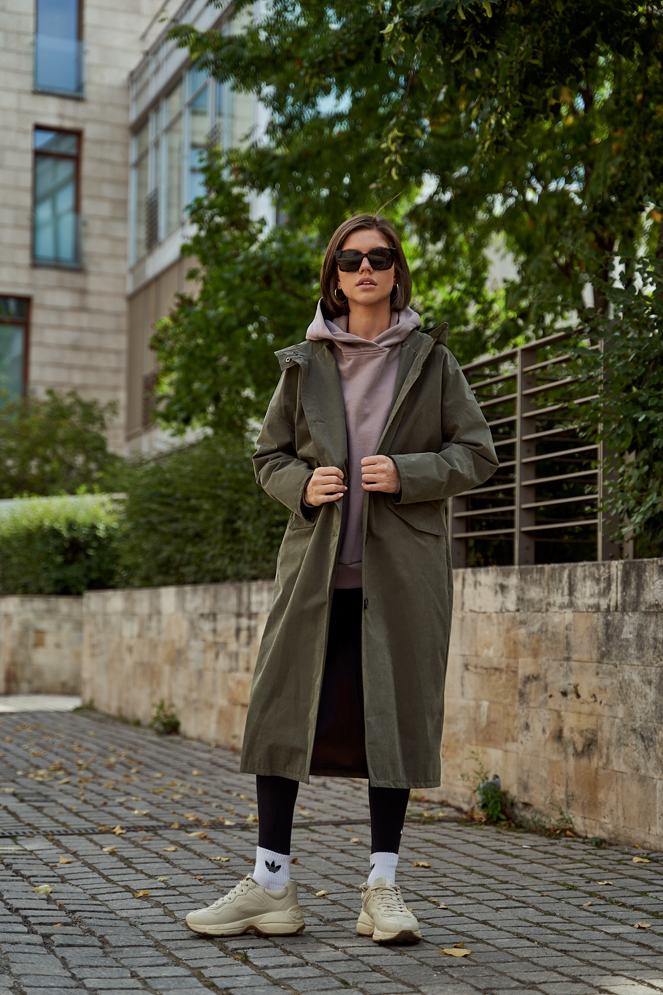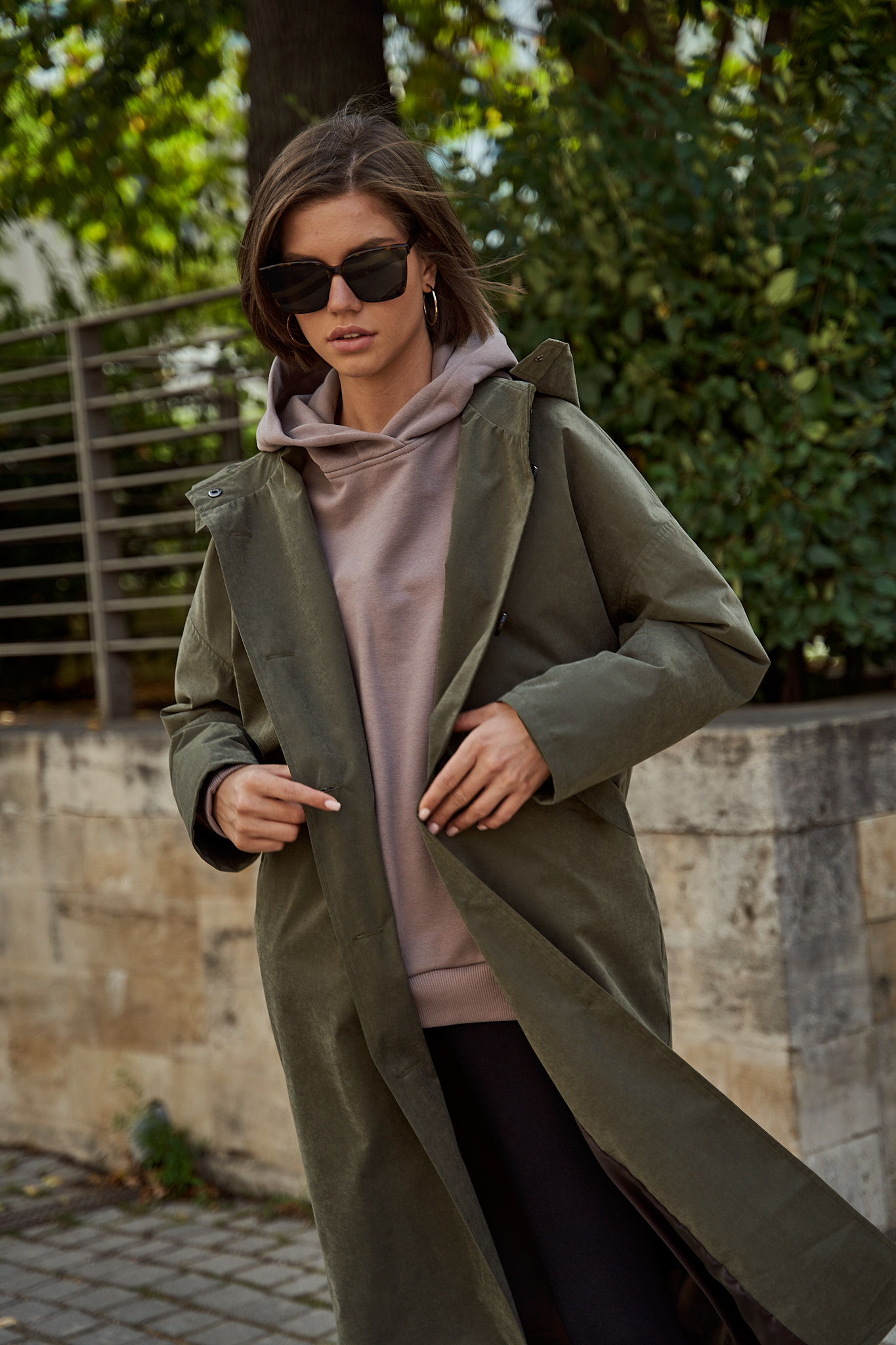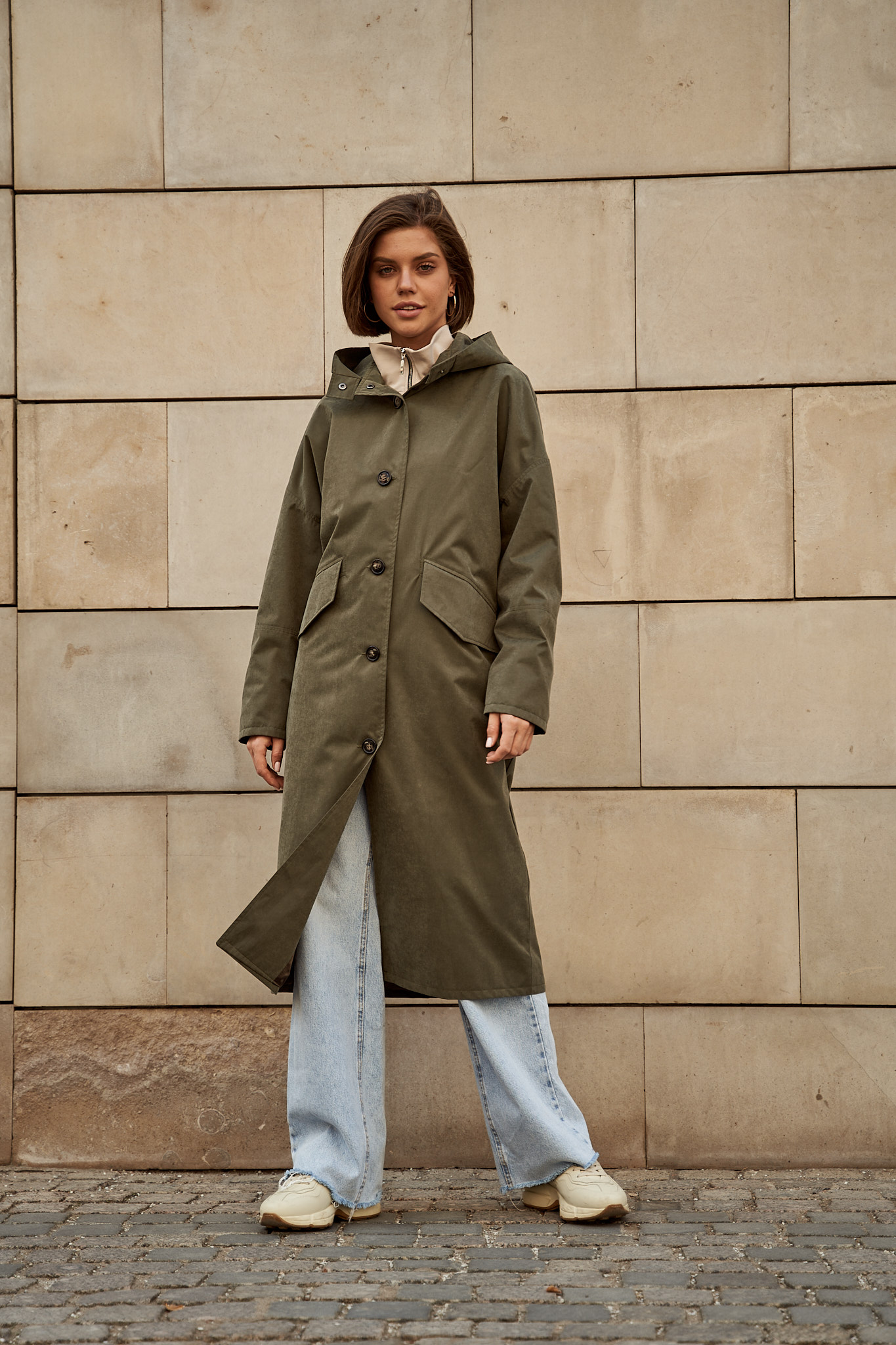 Тренч с капюшоном хаки