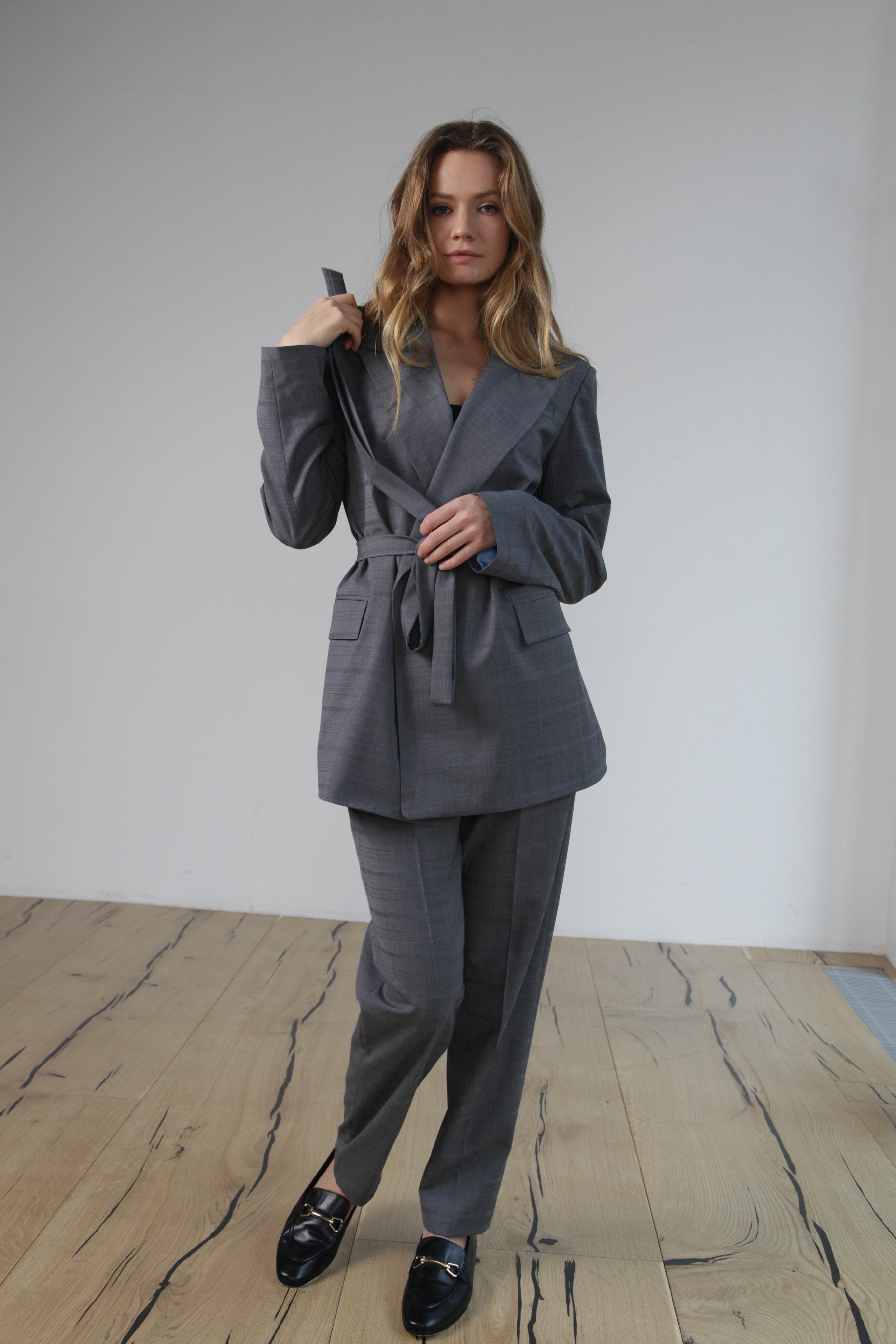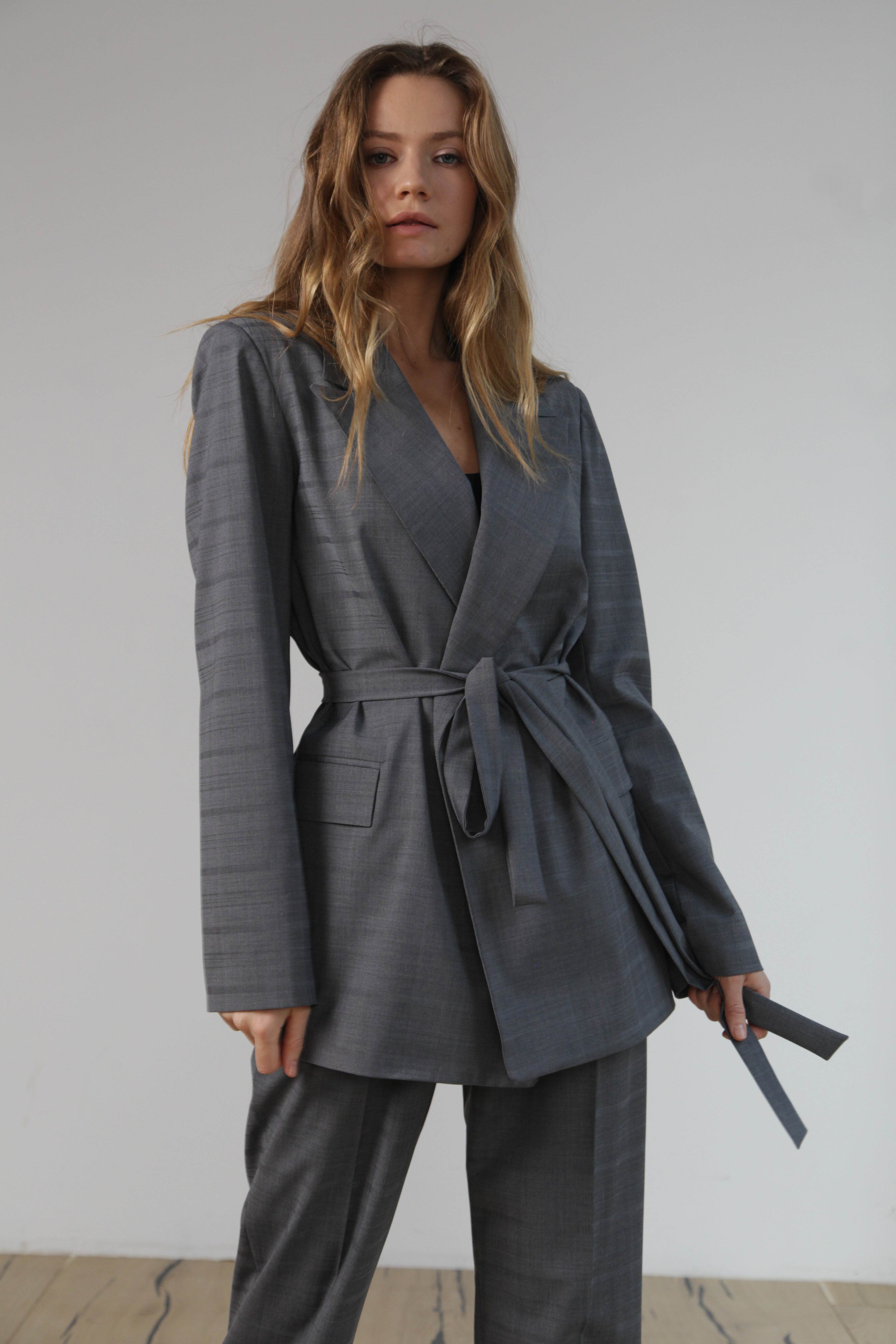 Жакет с поясом серый